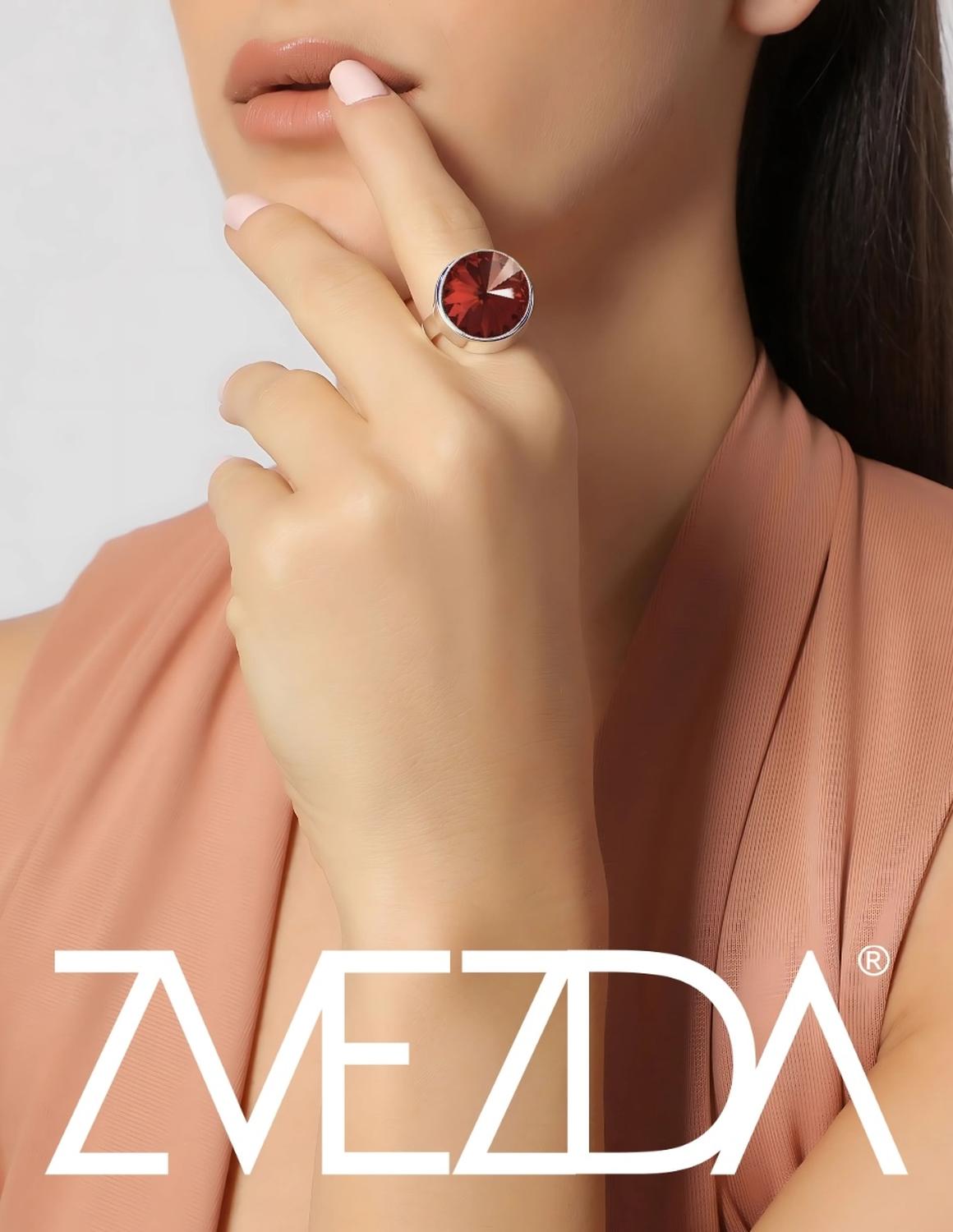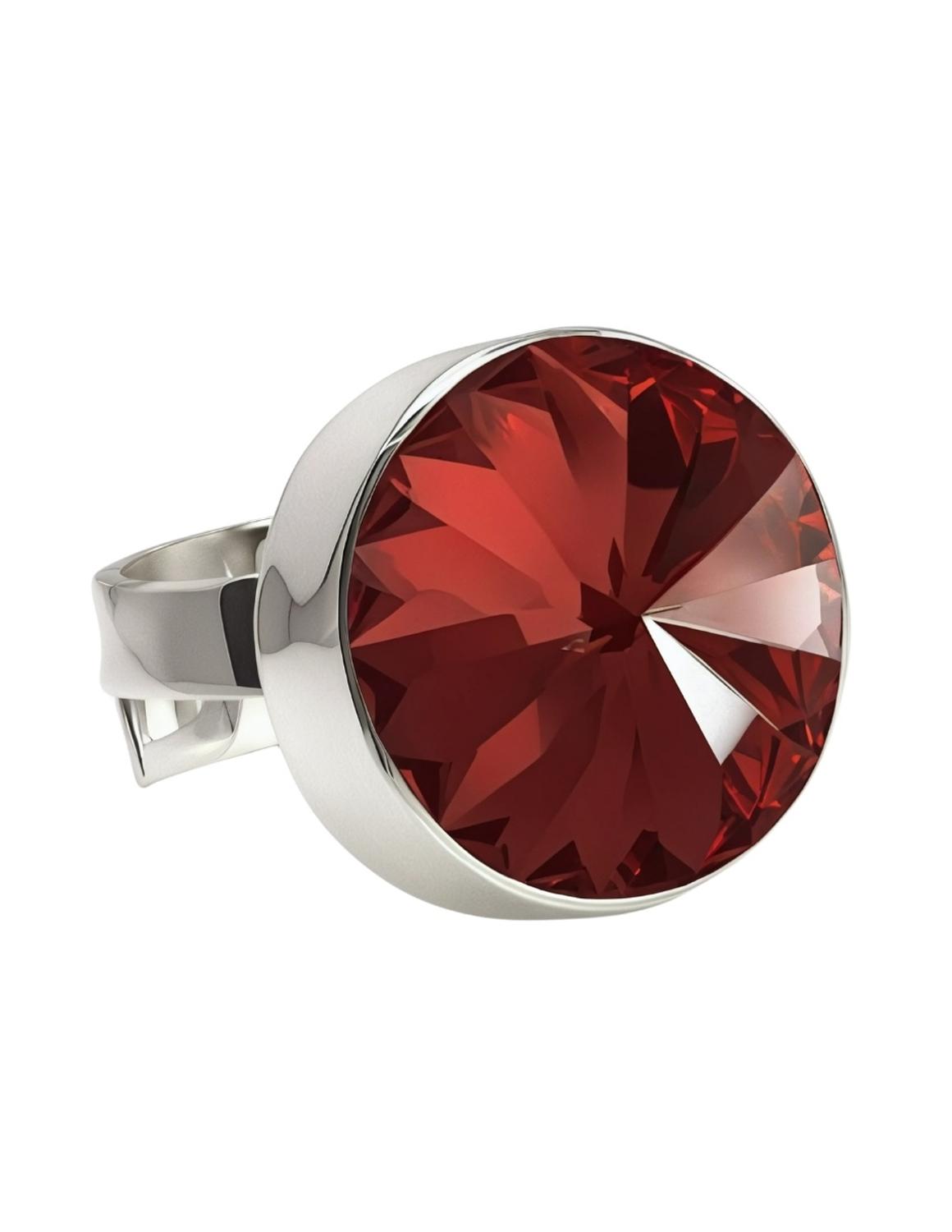 Hermoso Anillo ZVEZDA de plata ley .925, colección Argenta, elegante cristal corte Rivoli de 18mm de diámetro, colores disponibles Scarlet, Majestic Blue y Crytal, ajustable, elaborado por artesanos mexicanos, con Cristal Swarovski y Plata mexicana .925.