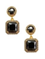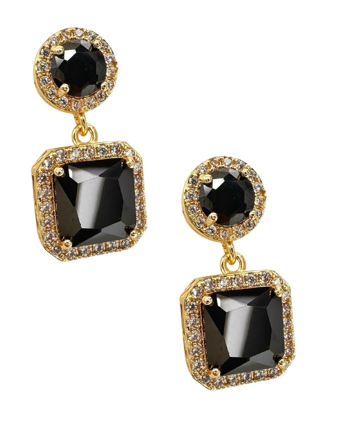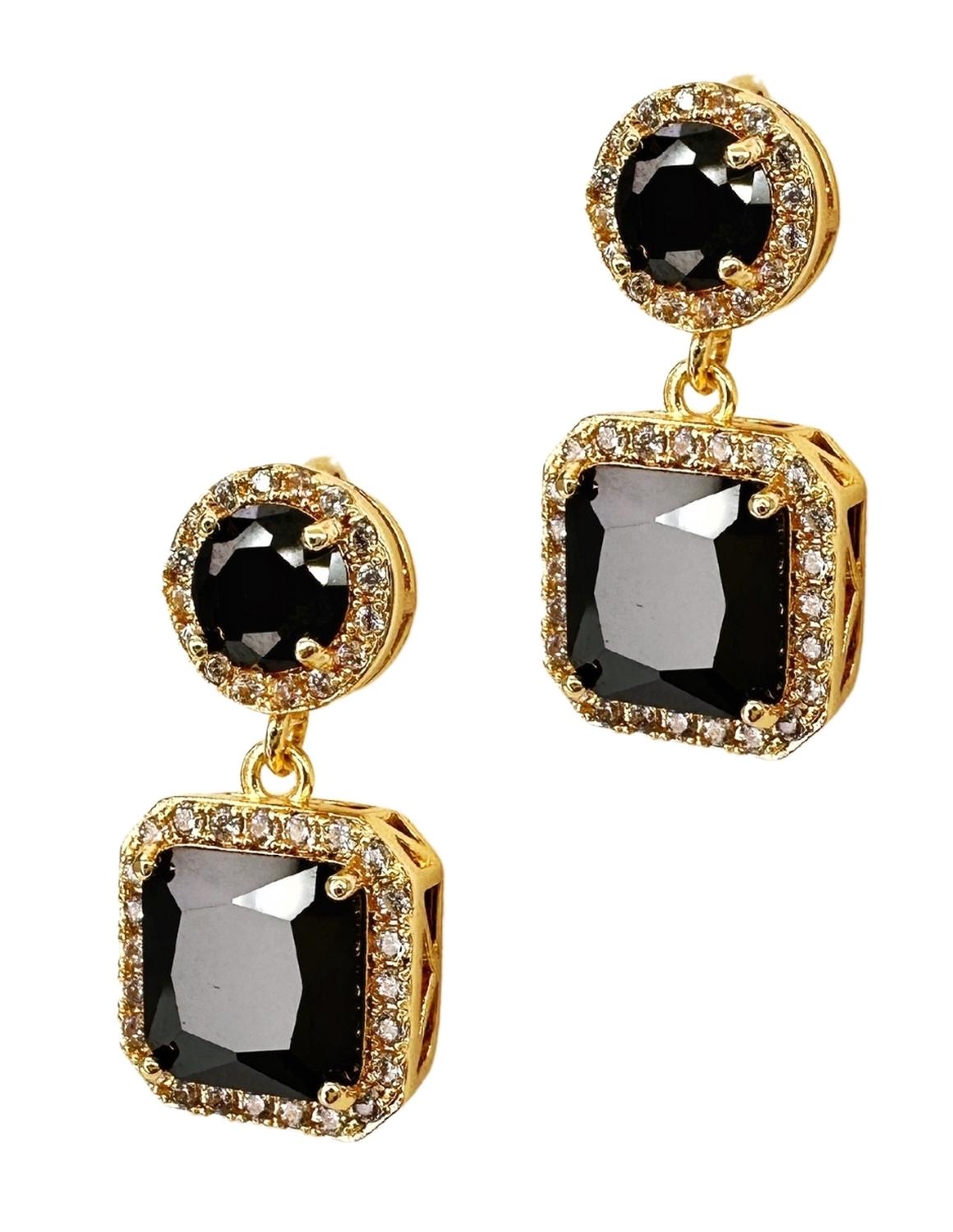 Hermosos Aretes ZVEZDA, Chapa de oro amarillo de 18K de alta calidad, colección Aurore, elegante diseño en corte Princesa, color Negro, pendientes de poste de 25mm de largo y circonias de 1mm,.