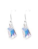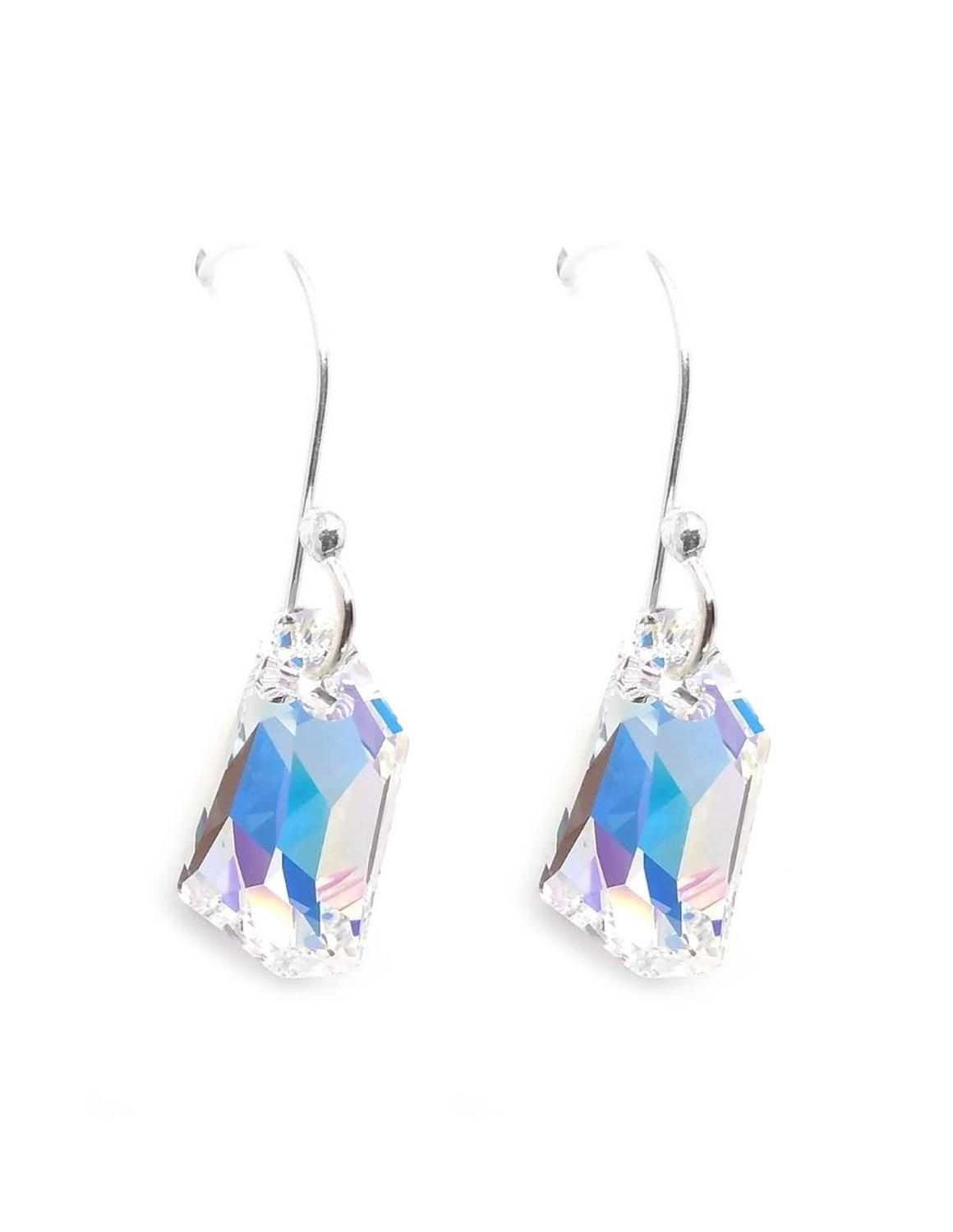 Hermosos Aretes ZVEZDA de plata ley .925, colección Élan, elegante cristal corte De Art de 18 mm de largo, colores disponibles Aquamarine, Aurore Boreal, Golden Shadow y Silver Night, pendientes de gancho, elaborados a mano por artesanos mexicanos, con Cristales Swarovski y Plata mexicana .925.