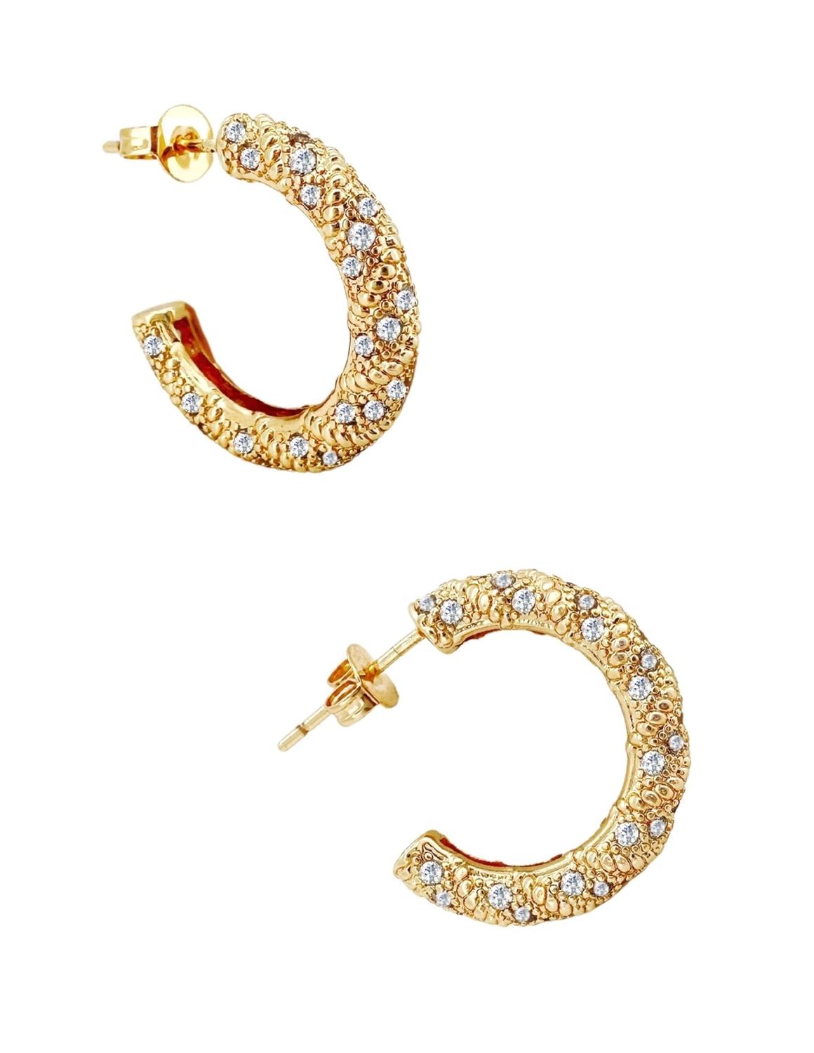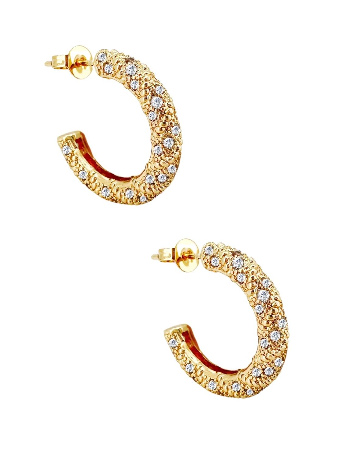 Hermosas Arracadas ZVEZDA, Chapa de oro amarillo de 18K de alta calidad, colección Aurore, elegante diseño de Arracadas en forma Torsal de 20mm de diámetro, con 76 circonias de 1.2mm.