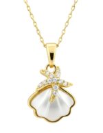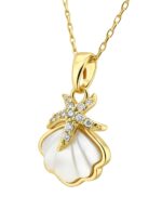 Hermosos collar con dije de chapa de oro amarillo de 18k de alta calidad, colección aurore, elegante dije con diseño de concha con estrella de mar de 18 x 13mm, color madre perla con dorado con 12 circonias, cadena de 45 cm de largo. En tu compra recibirás una bonita bolsa para regalo y estuche de la marca zvezda, así como tu certificado de autenticidad y garantía del producto. Juntos, celebramos la creación de joyería de moda única donde te invitamos a ser parte de este majestuoso universo lleno de brillo y pasión con zvezda, donde encontrarás el regalo perfecto para cumpleaños, aniversarios, navidad, día de las madres y cualquier otra ocasión. Todas nuestras piezas son desarrolladas con materiales de alta calidad, con un estilo fashion, moderno y elegante, ideales para la mujer de hoy.