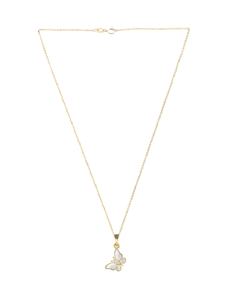 Collar de Mujer Chapa de oro 18K Mariposa Esmaltada con Circonia