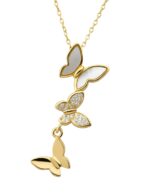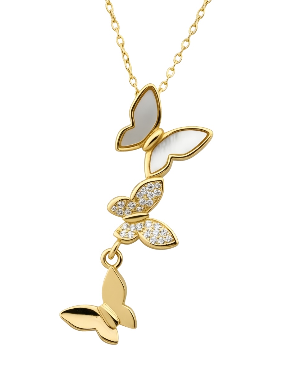 Collar de Mujer Chapa de oro 18K Mariposa Triple con Circonia