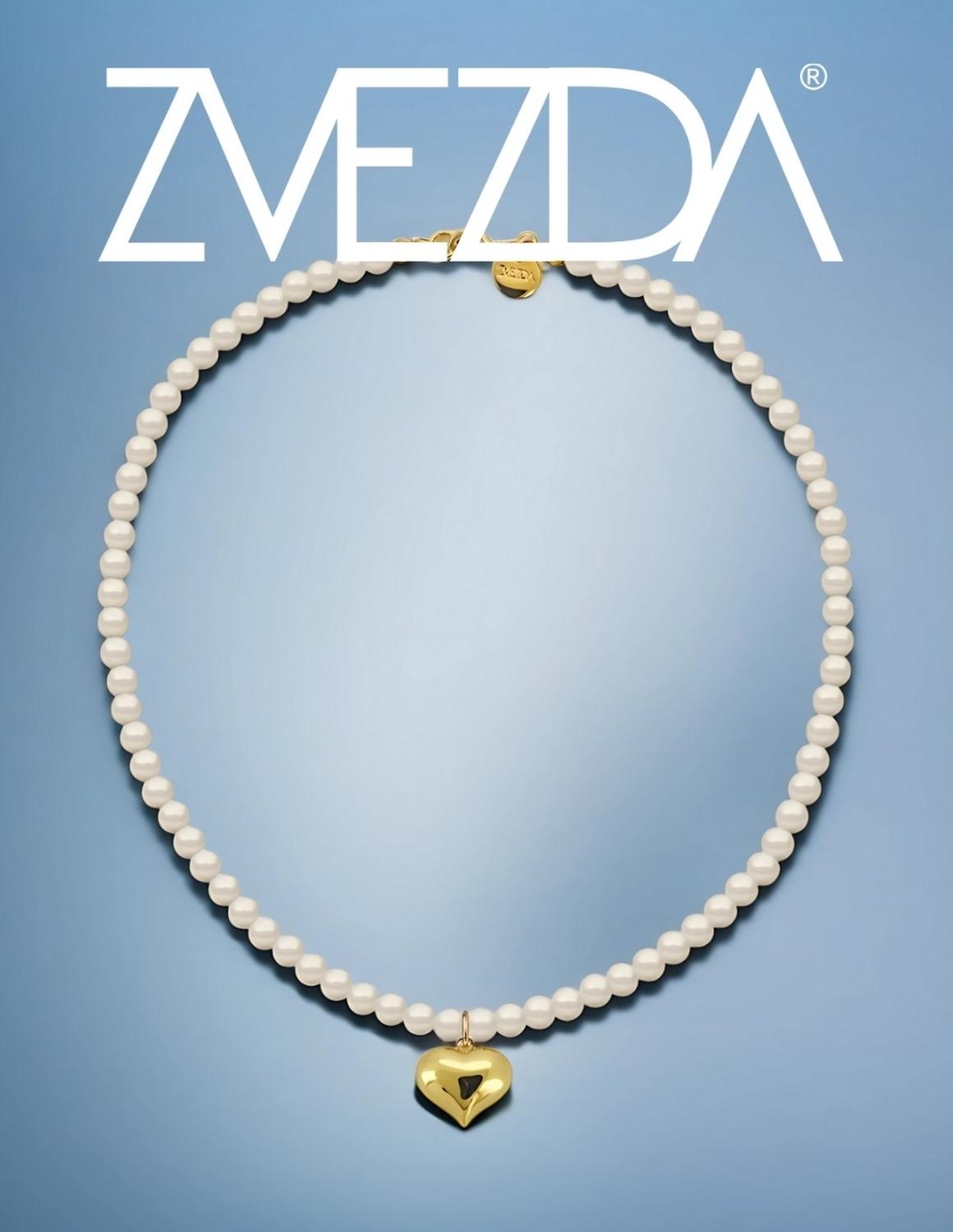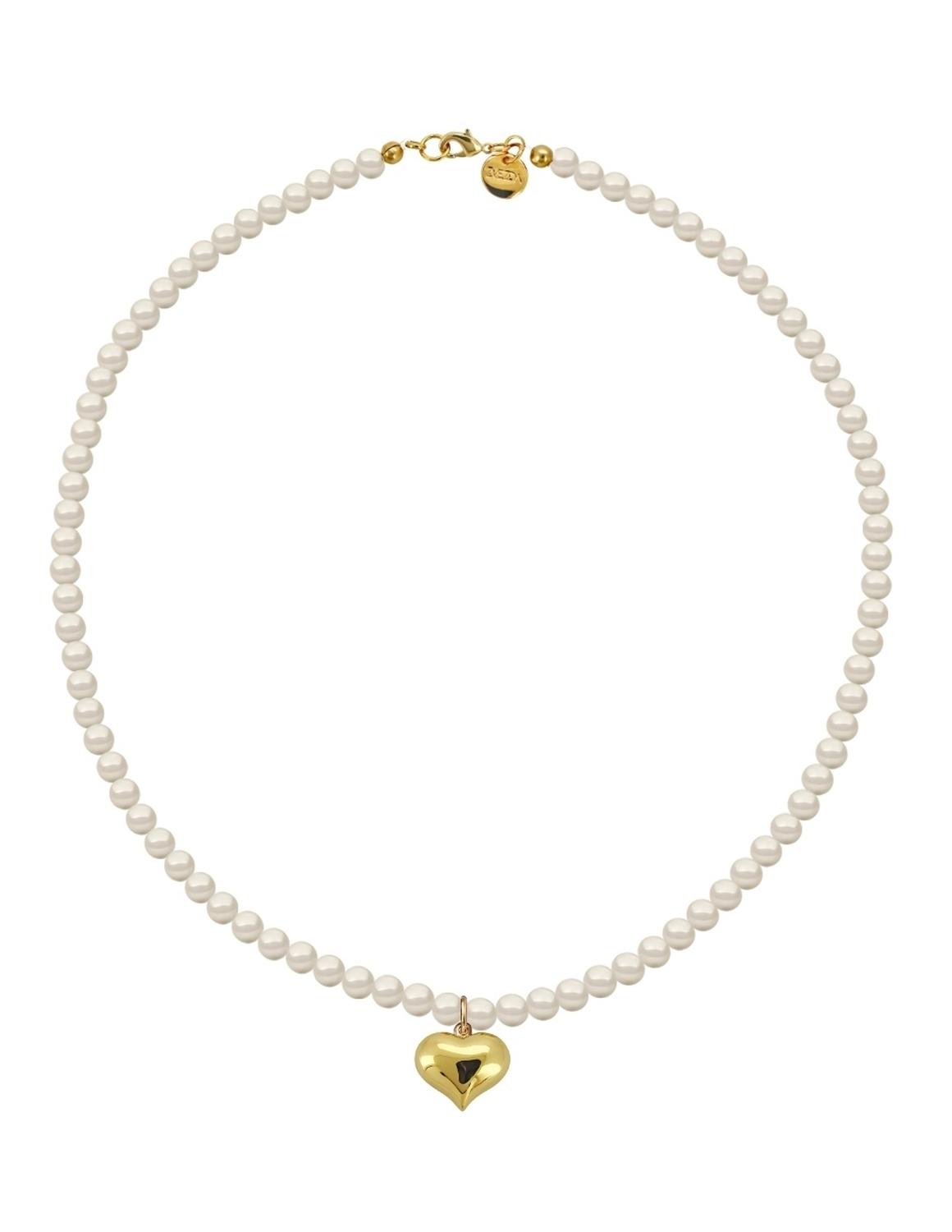 Collar de Mujer con Dije Corazón Perlas de Cristal Chapa de oro 18K Zvezda