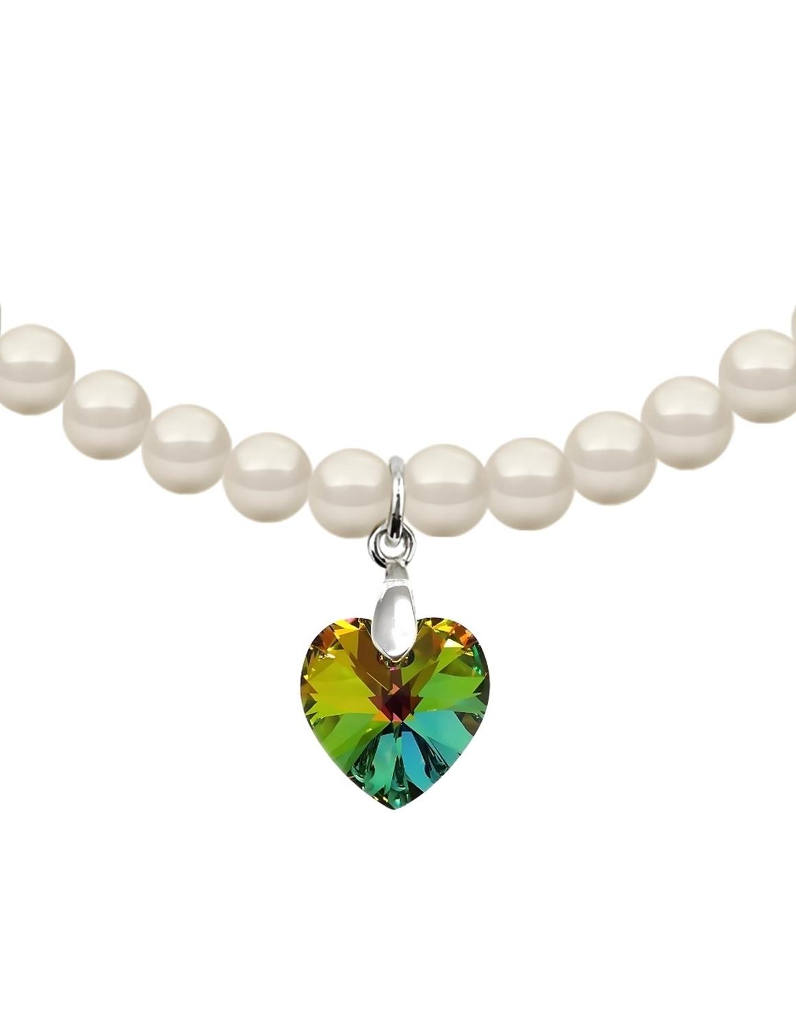 Collar de Mujer con dije de Corazón Perlas de Cristal Plata .925 Zvezda