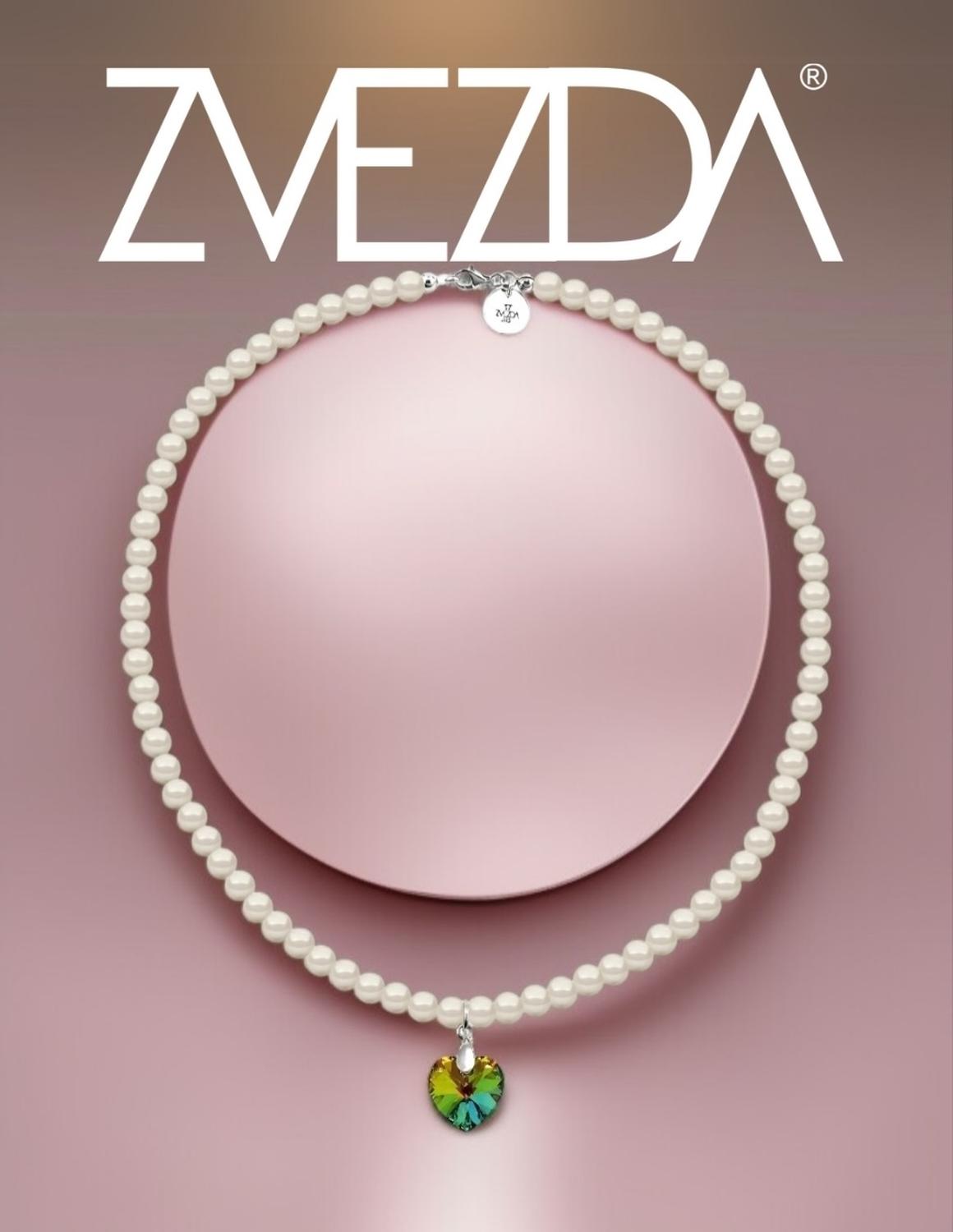 Collar de Mujer con dije de Corazón, Perlas de Cristal Plata .925 Zvezda