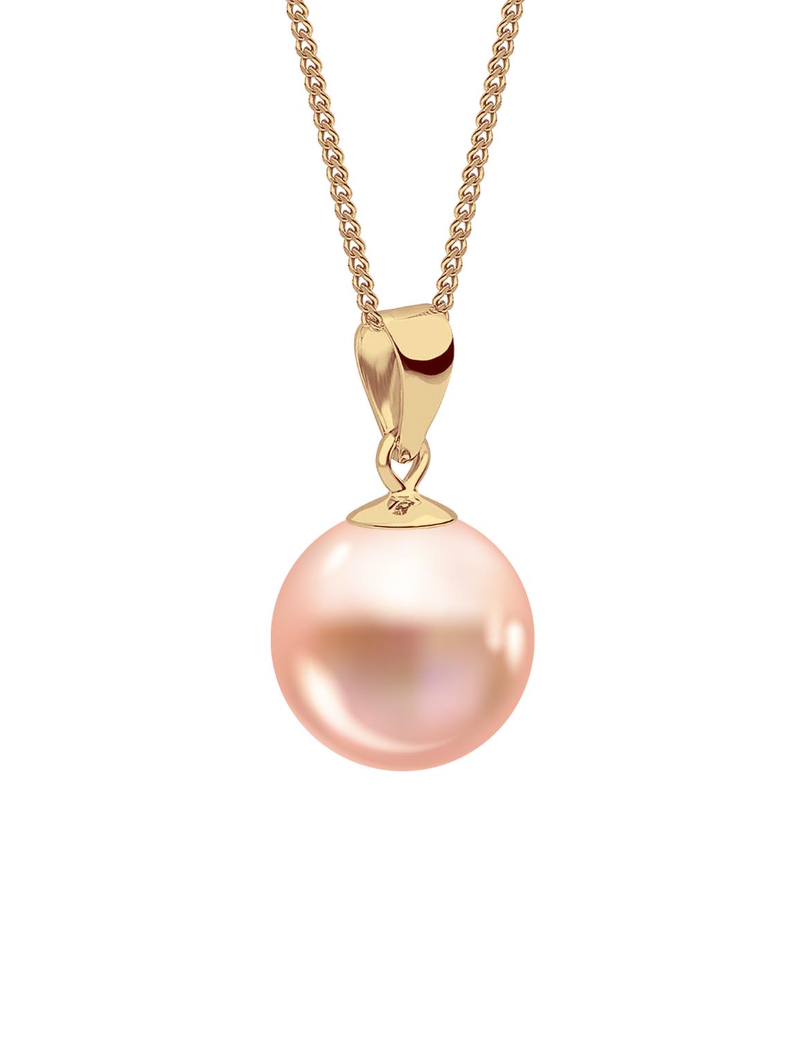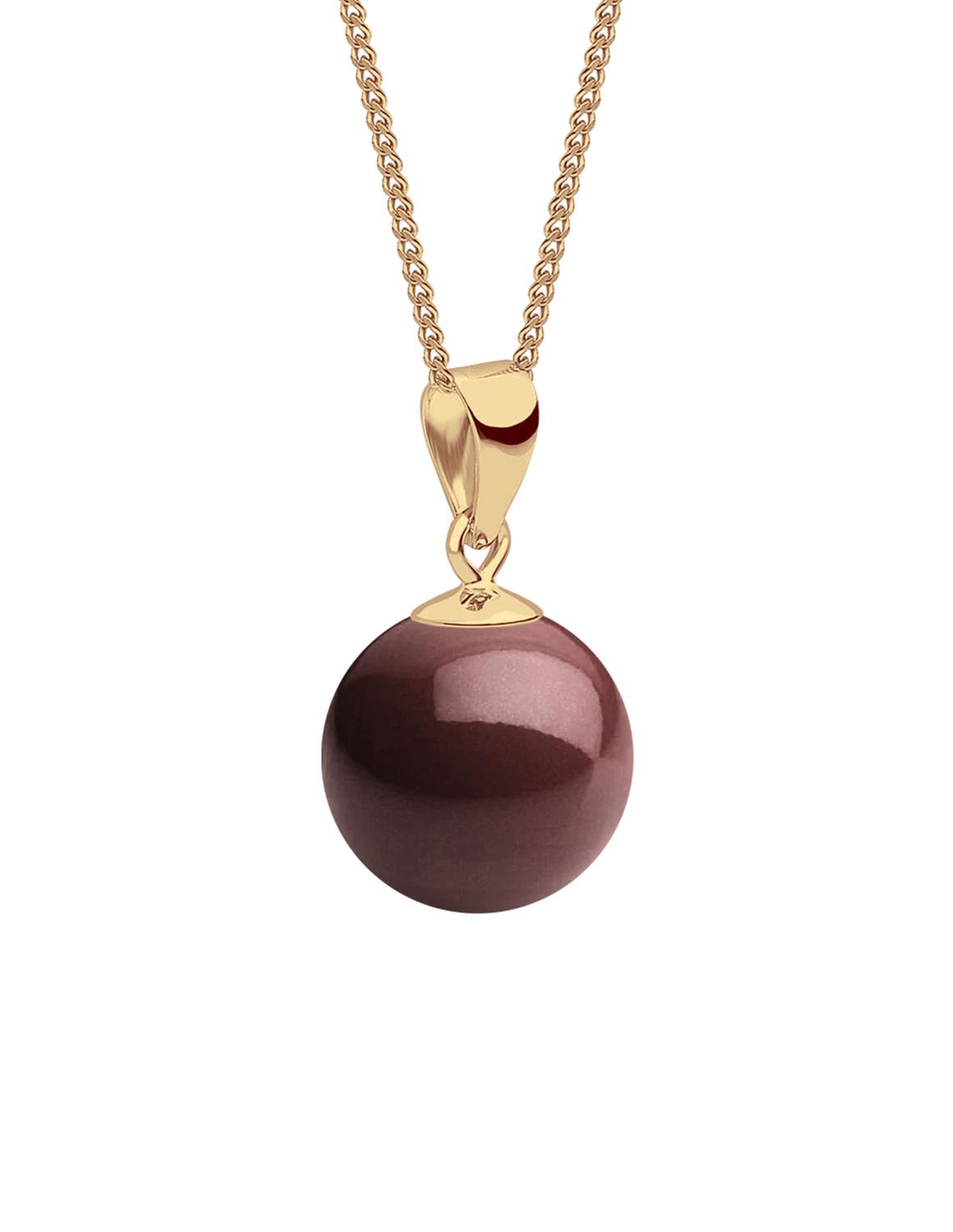 Hermoso Collar con dije de perlas de cristal marca ZVEZDA, Chapa de oro amarillo de 18K de alta calidad, colección Éclair, elegante dije con diseño de perlas de cristal de 10mm de diámetro colores disponibles Cream, Peach, Lavander, Rose Gold, Light Blue, Rosaline, Black o Bordeux, cadena de chapa de oro amarillo de 18K con 45cm de largo, elaborado por artesanos mexicanos con Perlas de Cristal Austriaco y Chapa de oro de 18k.