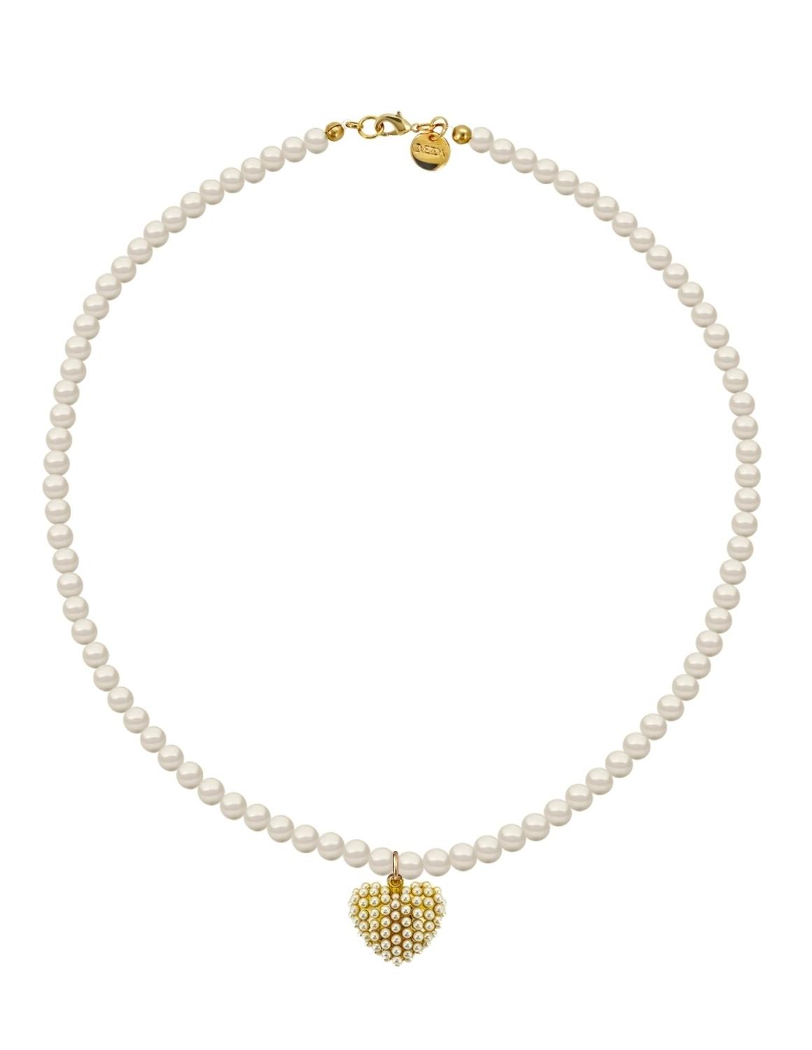 Collar de Mujer con Dije Corazón Perlas de Cristal Chapa de oro 18K Zvezda