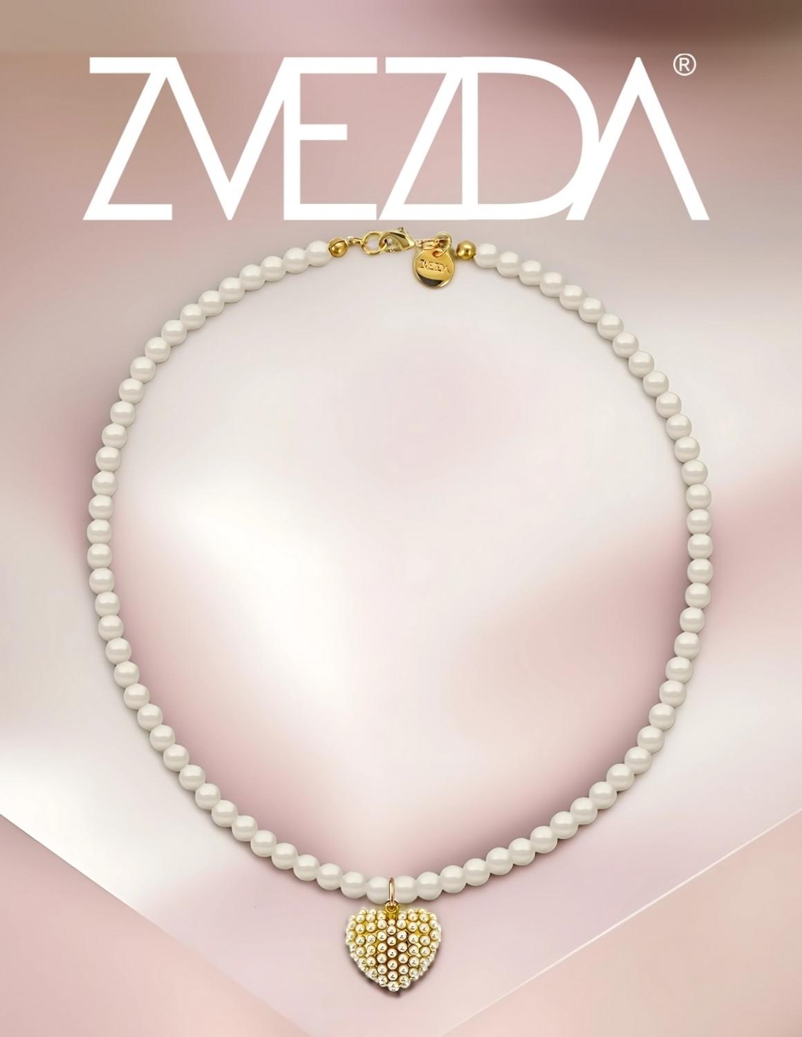 Collar de Mujer Perlas de Cristal Chapa de oro 18K Dije de Corazón Con Perlas Zvezda