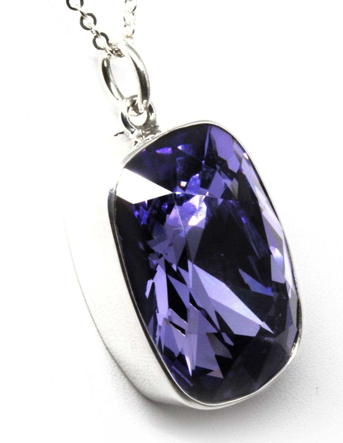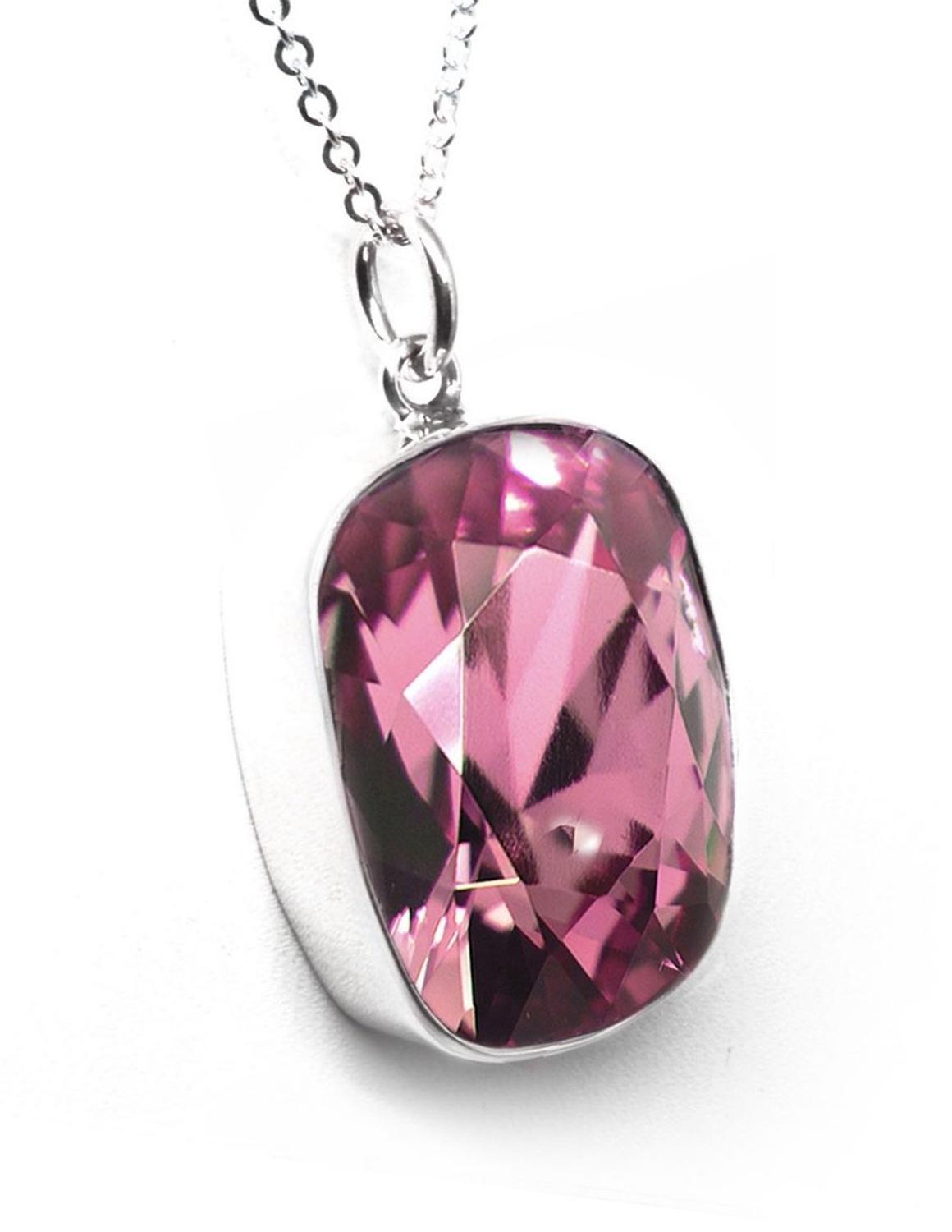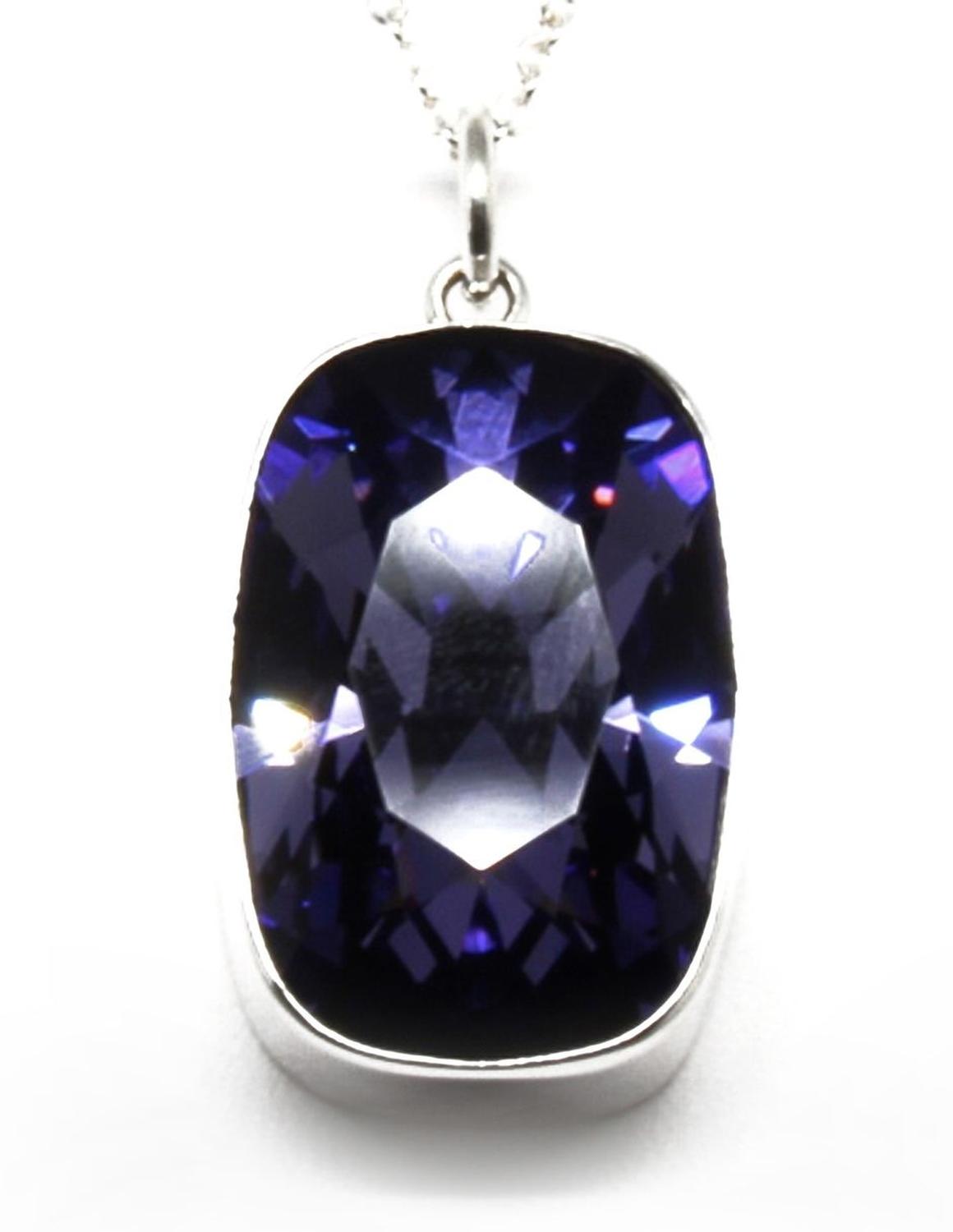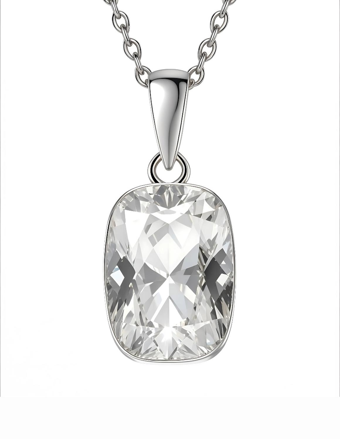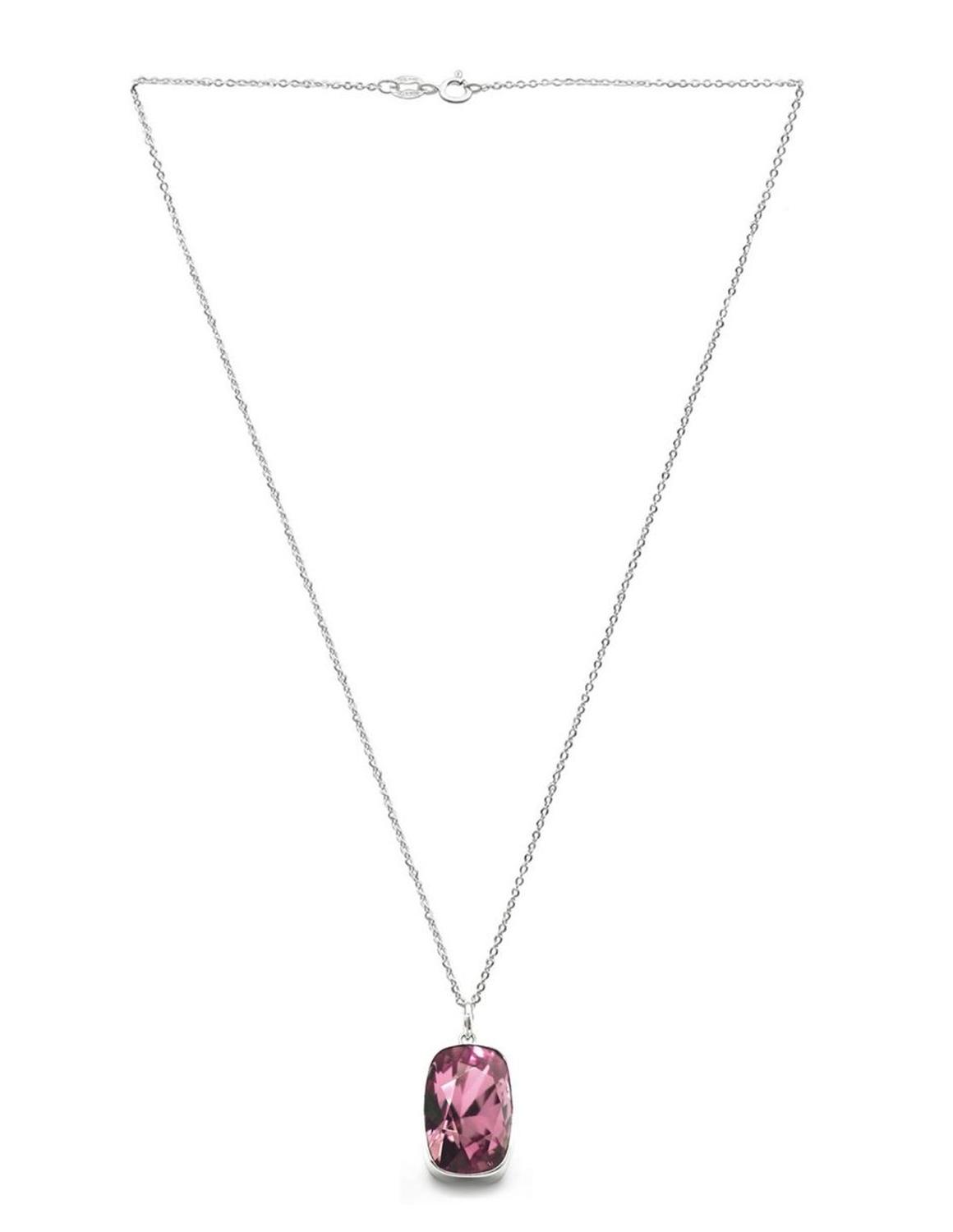 Hermoso Collar ZVEZDA de plata ley .925, colección Argenta, elegante cristal corte Baguette de 18mm de largo, colores disponibles Rose, Aquamarine, Silver Night, Siam, Tanzanite, Crystal y Light Colorado Topaz, cadena de 45cm de largo con 5cm de extensión, elaborado a mano por artesanos mexicanos, con Cristal Swarovski y Plata mexicana .925.