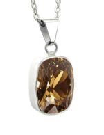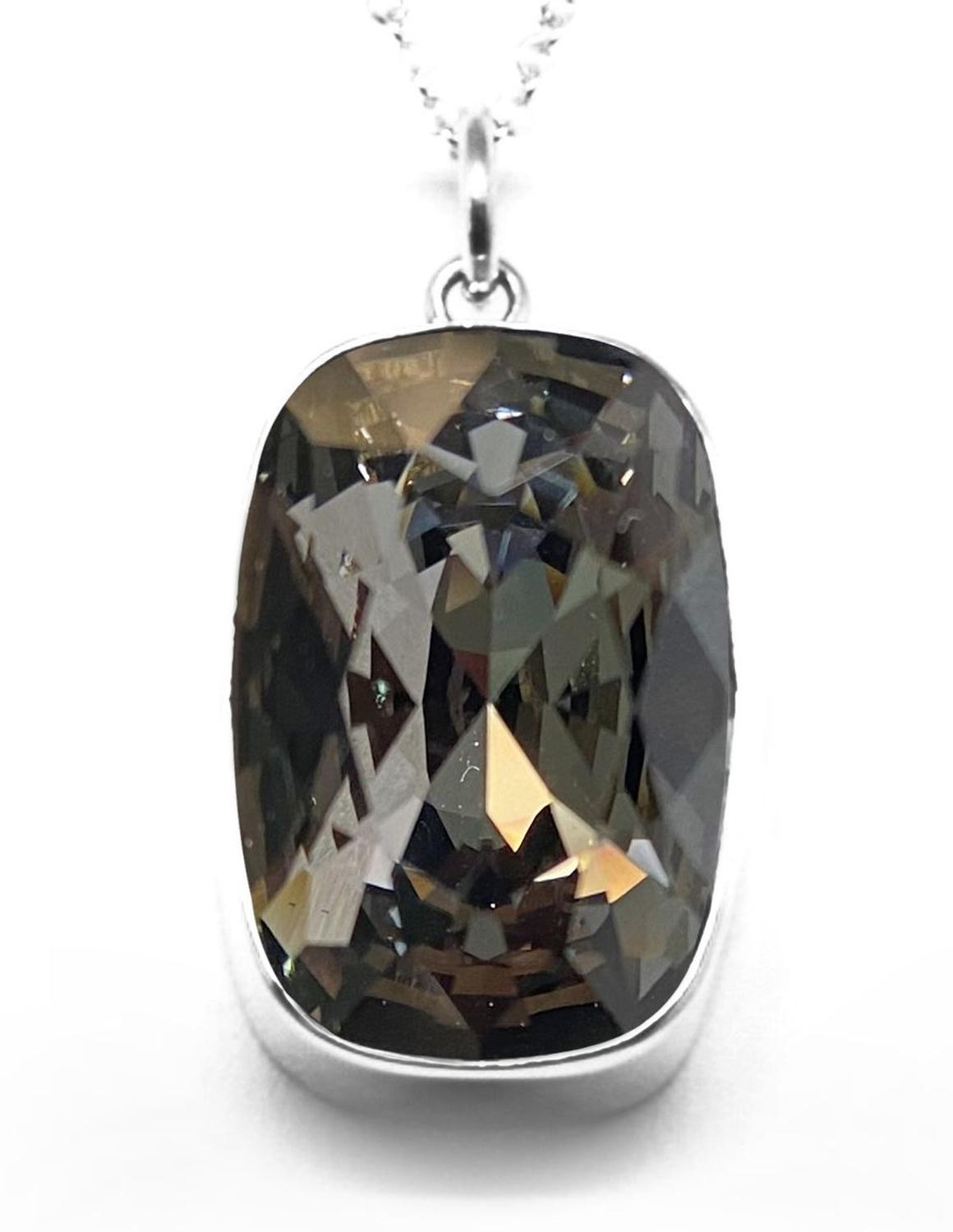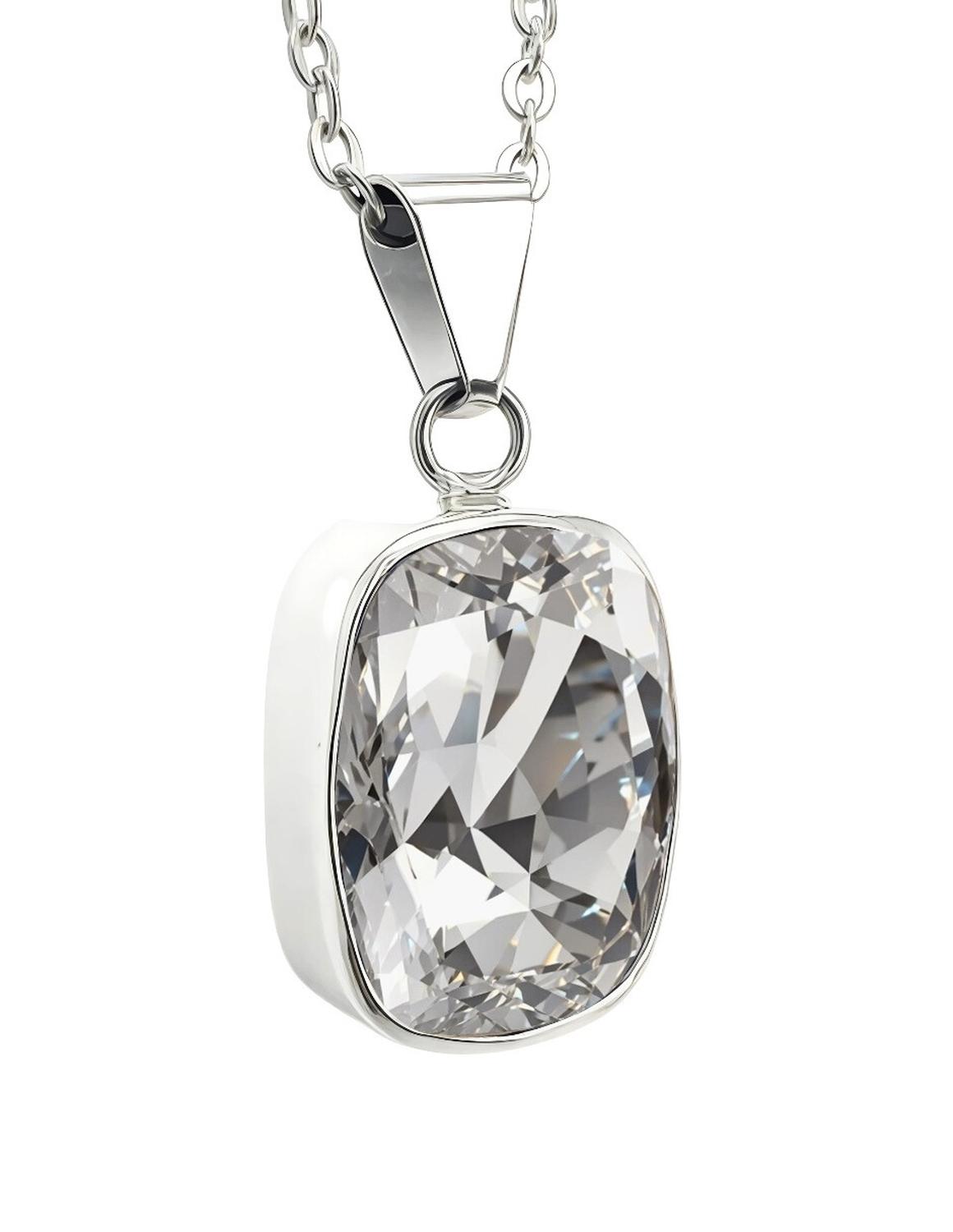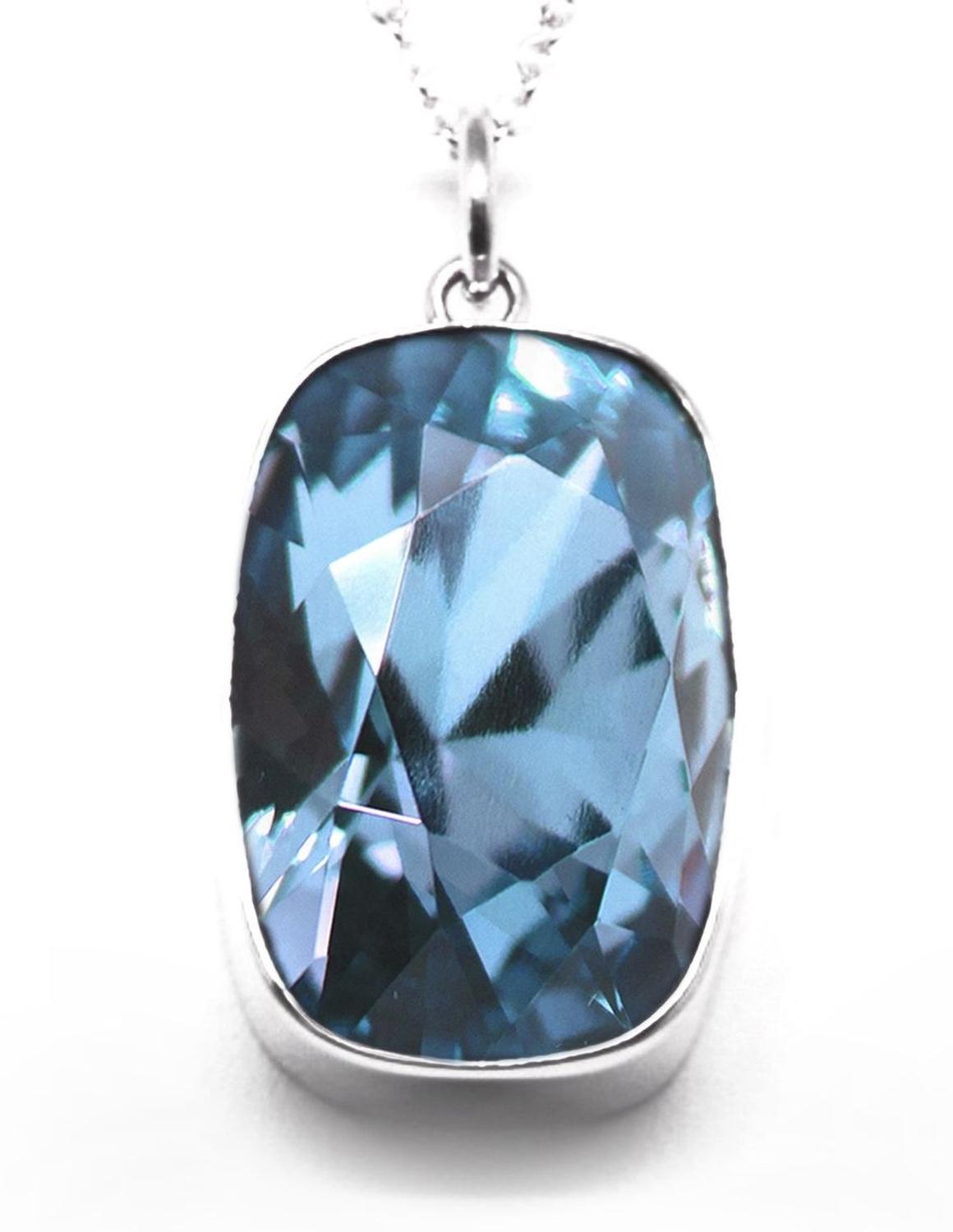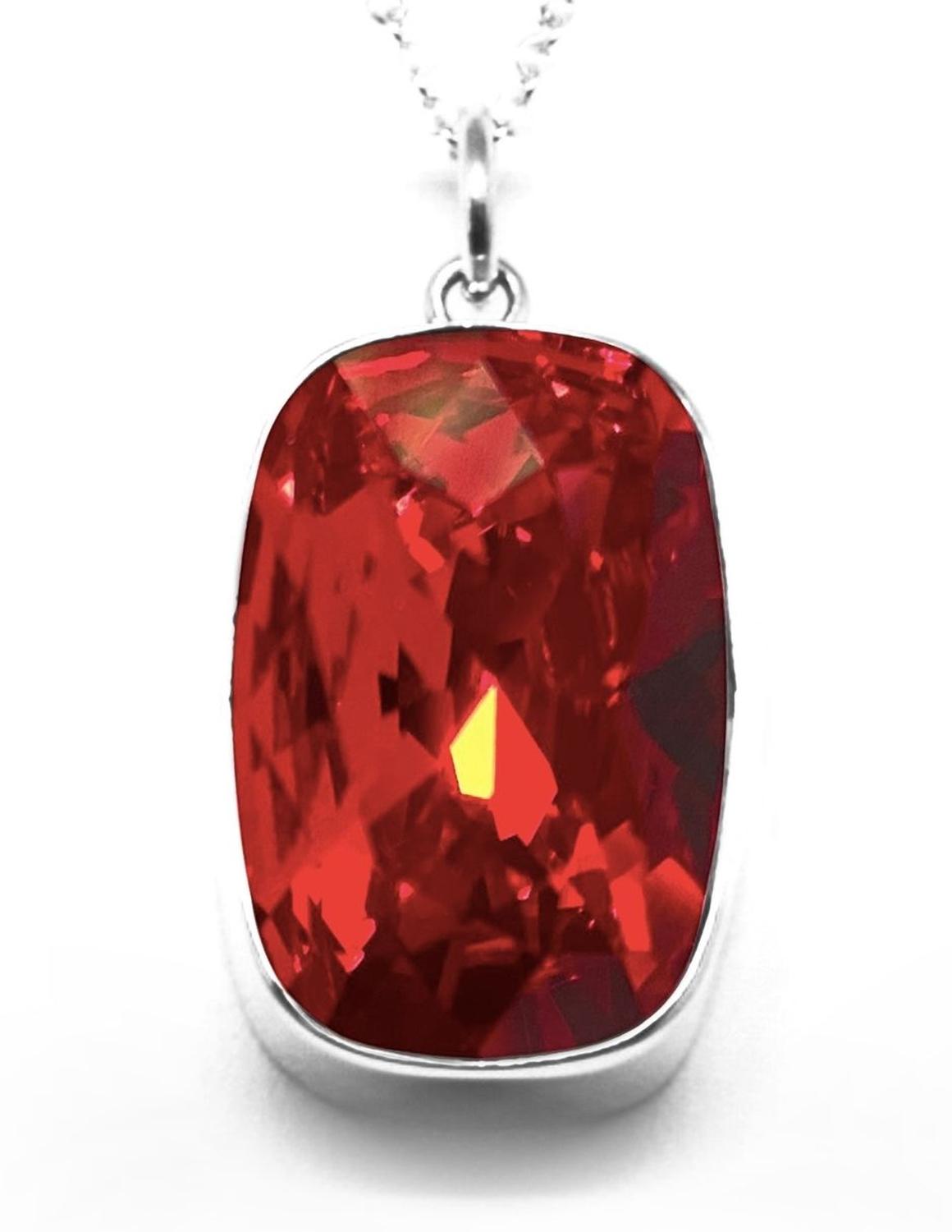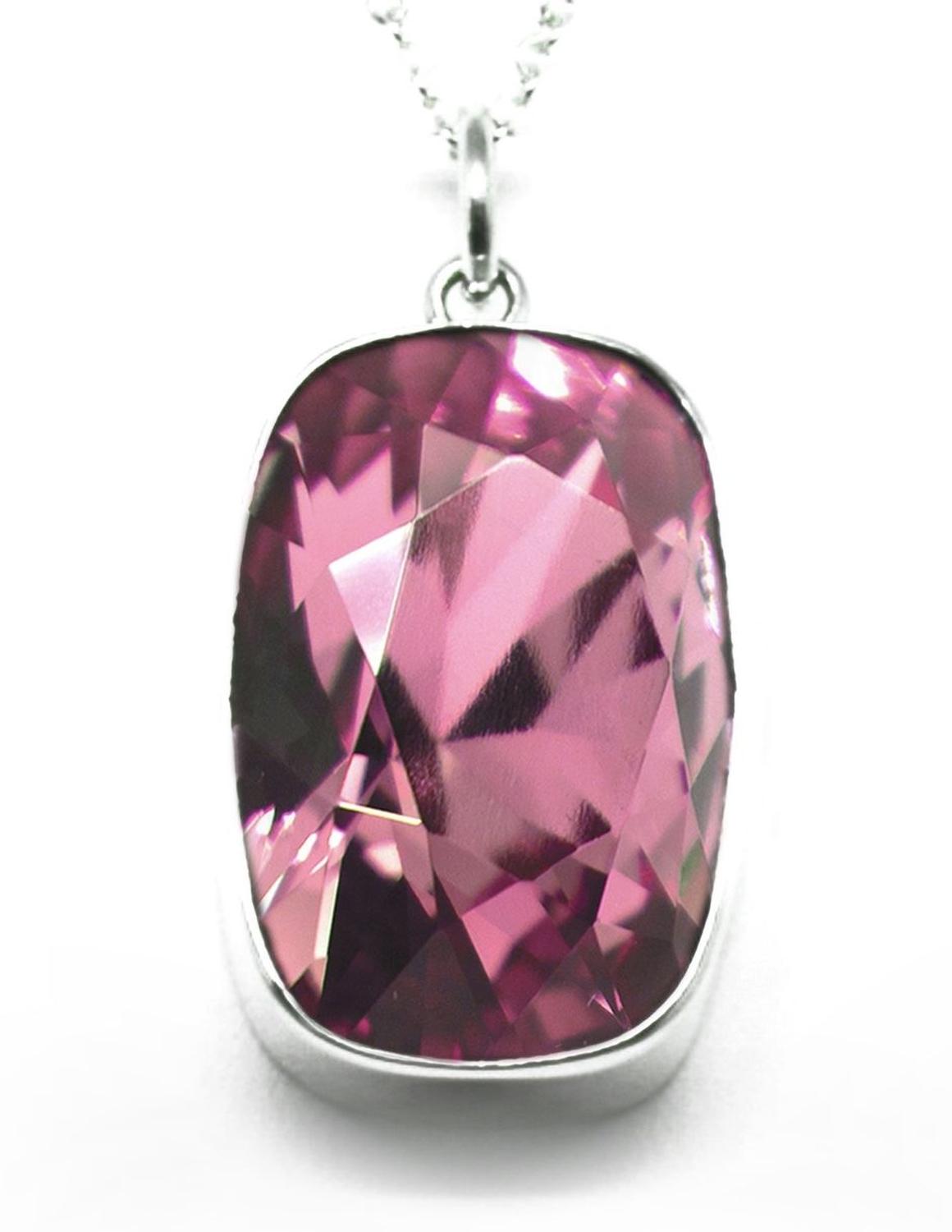 Hermoso Collar ZVEZDA de plata ley .925, colección Argenta, elegante cristal corte Baguette de 18mm de largo, colores disponibles Rose, Aquamarine, Silver Night, Siam, Tanzanite, Crystal y Light Colorado Topaz, cadena de 45cm de largo con 5cm de extensión, elaborado a mano por artesanos mexicanos, con Cristal Swarovski y Plata mexicana .925.
