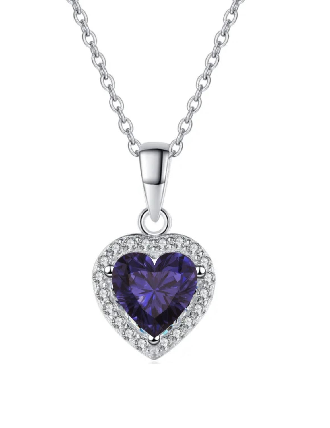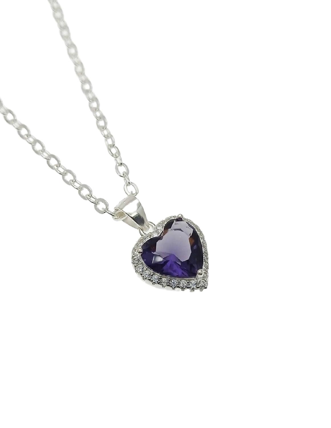 Hermoso Collar ZVEZDA de plata ley .925, colección Argenta, bonito diseño en forma de Corazón de 15mm de largo, colores disponibles Cristal, Verde, Rosa, Azul Marino y Morado, cadena de 45cm de largo y plata mexicana .925.