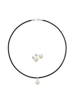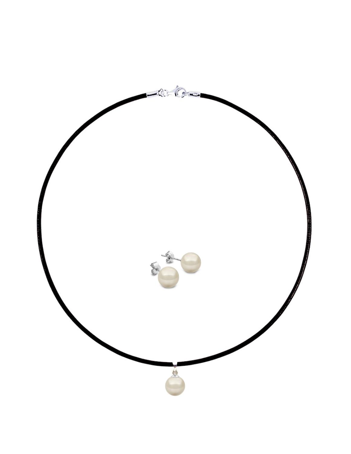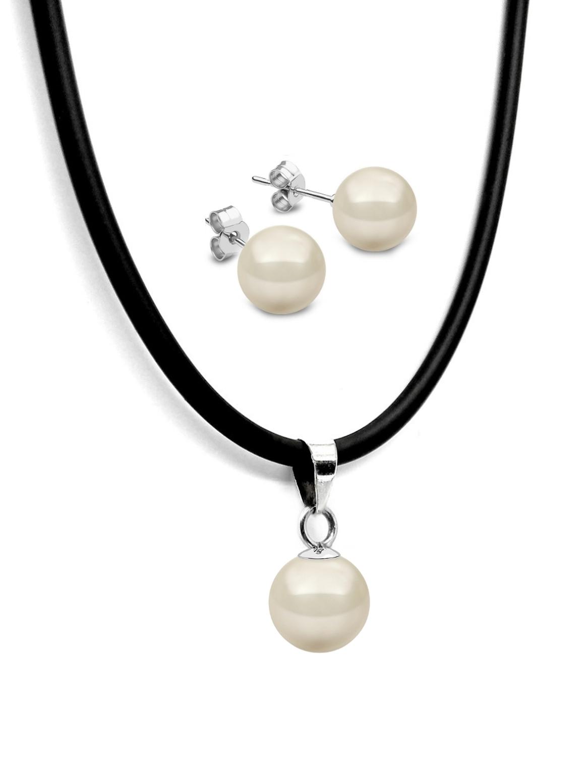 Collar y Aretes de Mujer Caucho, Plata .925 Perlas de Cristal Zvezda