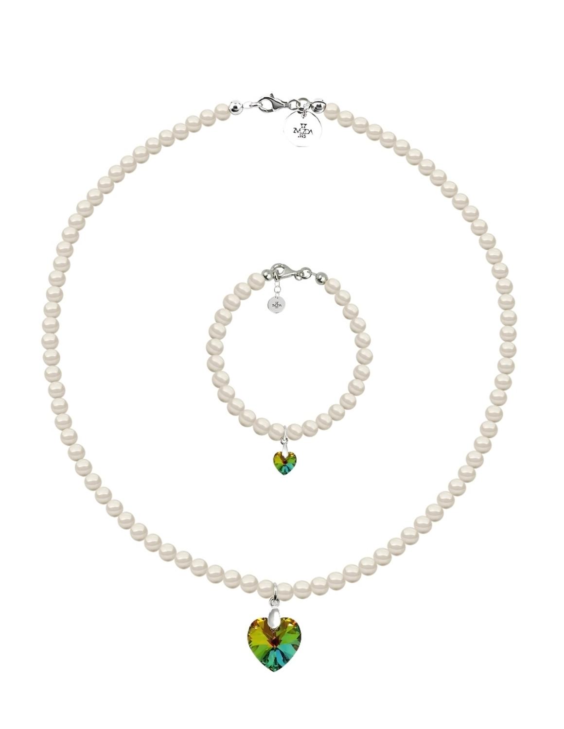 Hermoso Juego de perlas de cristal Austriaco Collar y pulsera con dije marca ZVEZDA, colección Éclair, Perlas de cristal y Plata .925, elegante diseño de perlas de cristal de 6mm de diámetro color Cream, pulsera ajustable y dije corte Corazón de 14mm y 10mm de largo, color Vitral con medidas disponibles de 45cm y 50cm de largo, elaborado por artesanos mexicanos con perlas de cristal Austriacos y Plata .925. En tu compra recibirás una bonita Bolsa para regalo y estuche de la marca Zvezda, así como tu Certificado de Autenticidad y Garantía del producto. Juntos, celebramos la creación de joyería de moda única donde te invitamos a ser parte de este majestuoso universo lleno de brillo y pasión con ZVEZDA, donde encontrarás el regalo perfecto para cumpleaños, aniversarios, navidad, día de las madres y cualquier otra ocasión. Todas nuestras piezas son desarrolladas con materiales de alta calidad, con un estilo moderno y elegante, ideales para la mujer de hoy.