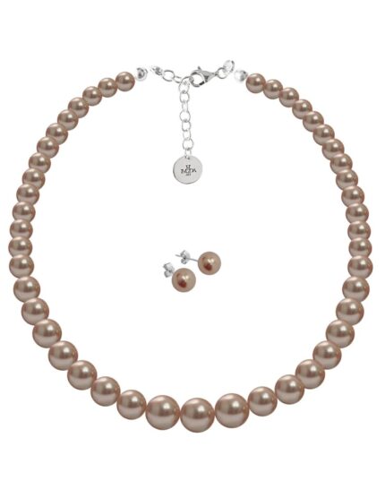 Collar y Aretes de Mujer Caucho, Plata .925 Perlas de Cristal Zvezda
