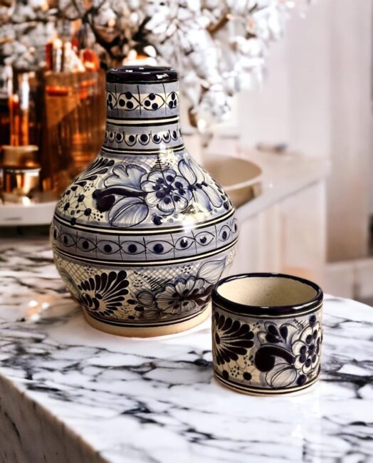 Juego Tequilero de Talavera Mexicana – azul