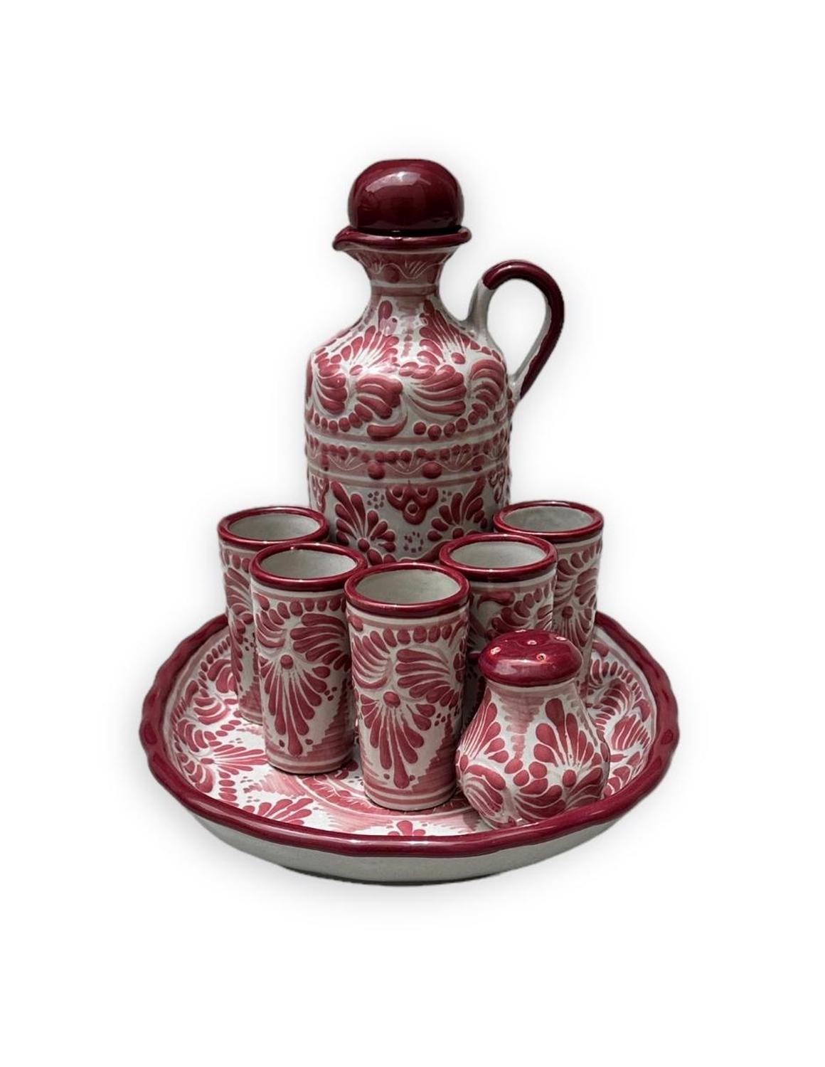 Juego Tequilero de Talavera Mexicana – rosa